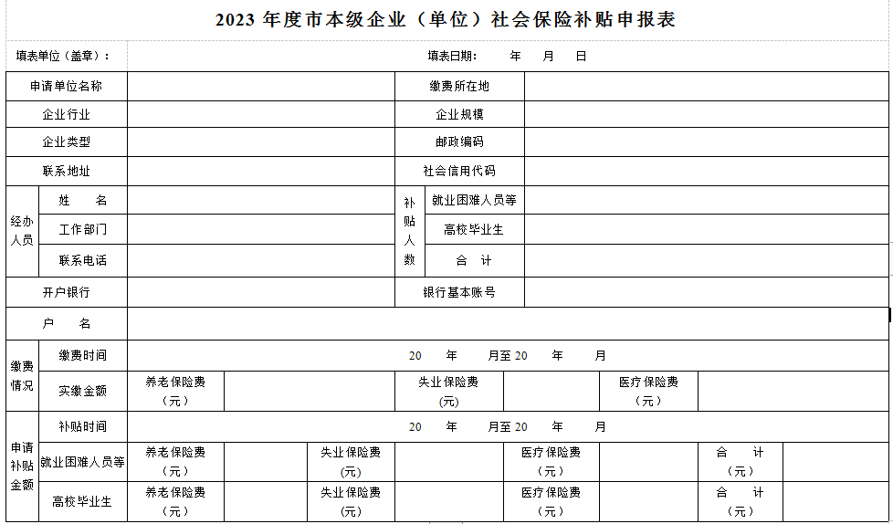 (四)《2023年度市本級(jí)企業(yè)(單位)社會(huì)保險(xiǎn)補(bǔ)貼申報(bào)表》(見(jiàn)附件);