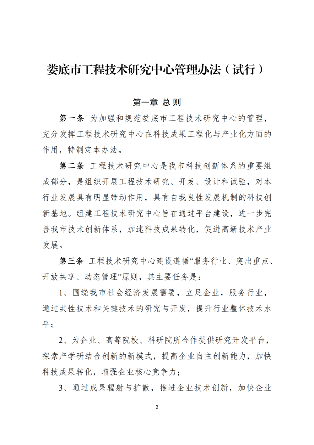 婁底市科學(xué)技術(shù)局關(guān)于印發(fā)《婁底市工程技術(shù)研究中心管理辦法(試行)》的通知