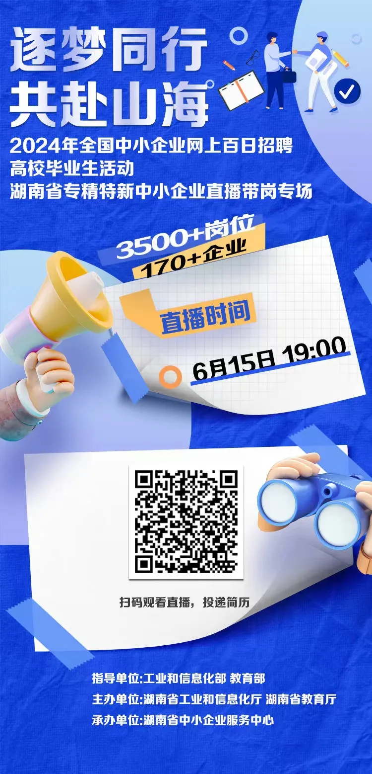 1、6月15日19:00在線直播|2024年湖南省專精特新中小企業(yè)直播帶崗活動專場