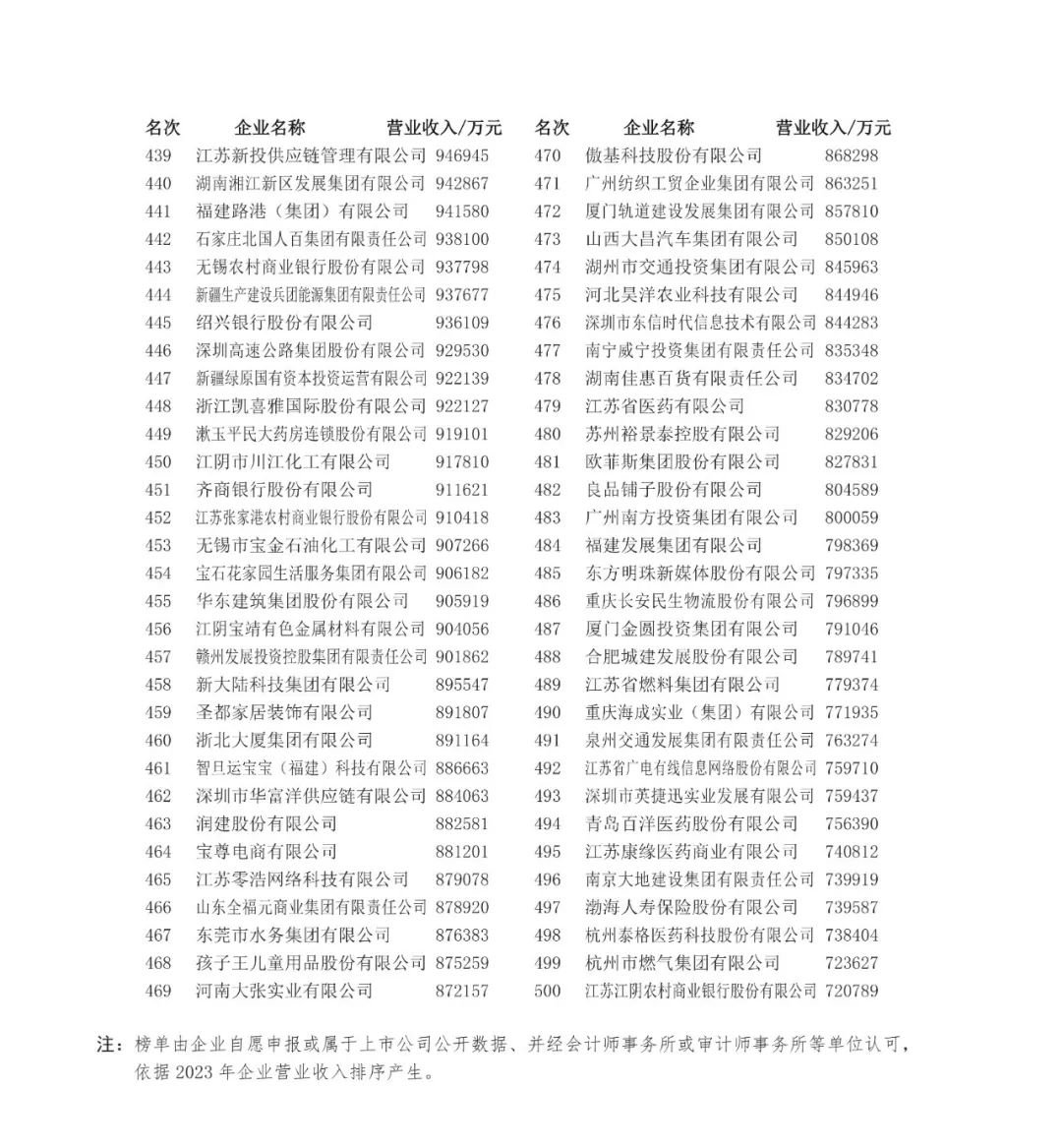 以“向‘新’而行 打造更多世界一流企業(yè)”為主題的“2024中國500強(qiáng)企業(yè)高峰論壇”,于9月10—11日在天津市舉行。會(huì)上,中國企業(yè)聯(lián)合會(huì)、中國企業(yè)家協(xié)會(huì)連續(xù)第23次發(fā)布中國企業(yè)500強(qiáng)等各項(xiàng)榜單。