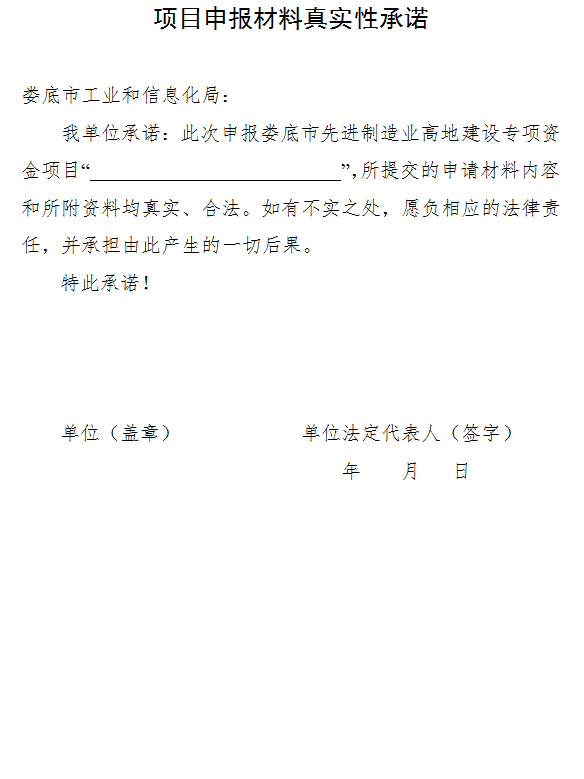 (三)其他要求。各縣市區(qū)須嚴格按照《婁底市先進制造業(yè)高地建設專項資金管理辦法》(婁財企〔2023〕147號)文件要求認真組織項目申報工作,項目申報材料必須真實齊全。嚴禁違規(guī)推薦,弄虛作假,一旦查實有資料作假行為,不予受理其上報文件,并將影響到對轄區(qū)項目的支持,同時追究申報企業(yè)、審批人員的責任。