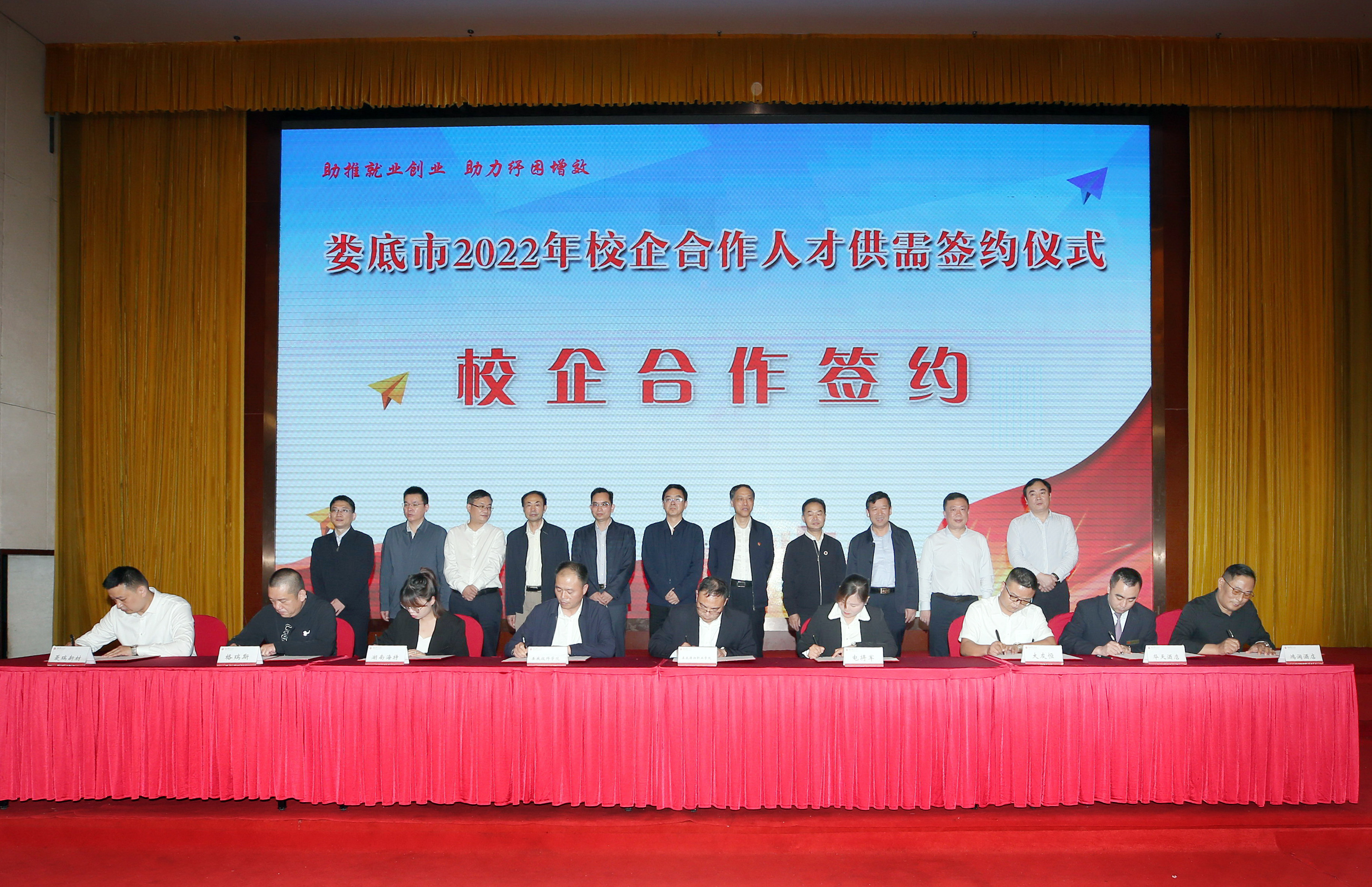 本報(bào)訊 5月28日,婁底舉行校企合作人才供需簽約儀式。湖南人文科技學(xué)院、婁底職業(yè)技術(shù)學(xué)院等4所院校與婁底經(jīng)開(kāi)區(qū)、婁底高新區(qū)等5個(gè)園區(qū)簽訂校地合作協(xié)議,并與20家企業(yè)簽訂校企合作協(xié)議、應(yīng)屆畢業(yè)生就業(yè)意向協(xié)議。市委常委、市委組織部部長(zhǎng)謝忠陽(yáng),市企業(yè)聯(lián)合會(huì)、企業(yè)家協(xié)會(huì)會(huì)長(zhǎng)余明庭等出席。