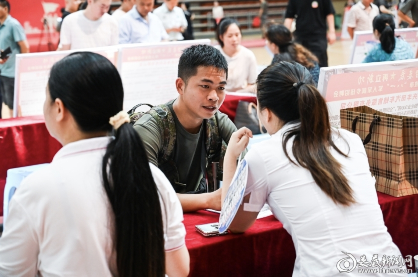 (8月2日,婁底市“八一”軍人軍屬專場(chǎng)招聘會(huì)在婁底市體育中心體育館舉行)